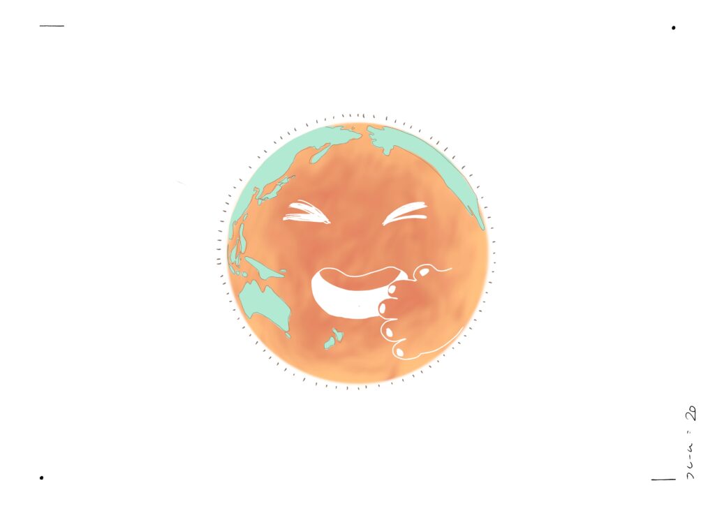 メディア表現領域1年生から4年生の有志は、このプログラム内の映像に登場する“地球”のイラストを担当。
