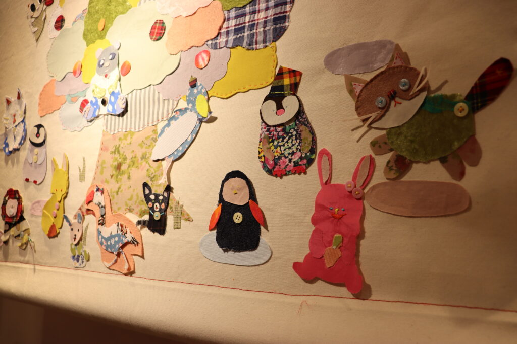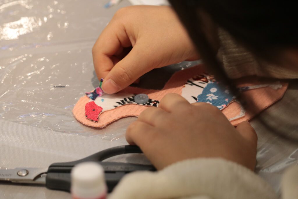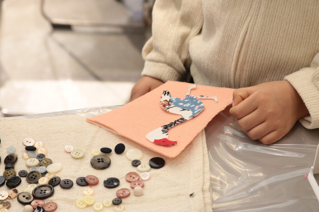『みんなで作ろう! コラージュ動物園』では、布の手触りや色の組み合わせを楽しみながら、参加者が思い思いの動物を制作。