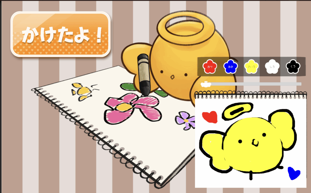 メディア表現領域からは、3年生の畠山雛旬さんが制作したデジタル絵本作品とアナログ絵本が展示されました。